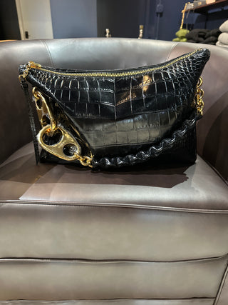 Tom Ford Womens Croc Embossed Black Shoulder Bag