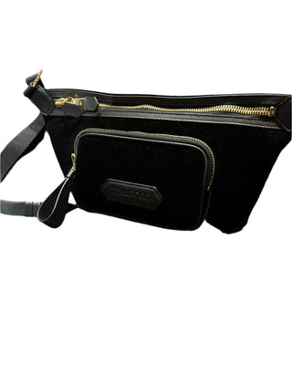 Tom Ford Mens Suede Logo-Appliqué Belt Bag in Black