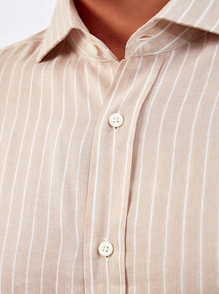 Brunello Cucinelli Men's Shirt In Beige & White Stripe
