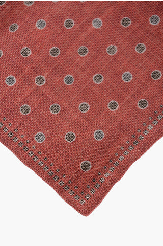 Brunello Cucinelli Men's Red Circle Plaid Silk Cotton Pocket Square