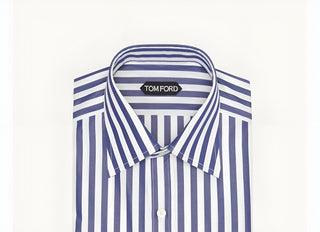 Tom Ford Men’s Navy & White Bengal Striped Button Down Dress Shirt