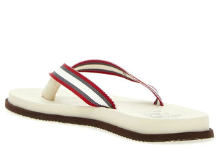 Brunello Cucinelli Men's Striped Strap Flat Flip-Flops In Red & Cream