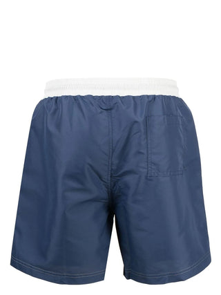 Brunello Cucinelli Mens Red & White Color Block Logo Embroidered Swim Shorts