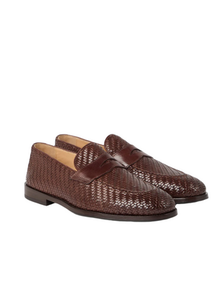 Brunello Cucinelli Mens Braided Penny Loafers In Brown