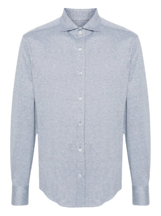 Brunello Cucinelli Mens Button Down Melange Ribbed Shirt in Blue