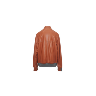 Brunello Cucinelli Grained Leather Stand-Collar Bomber Jacket with Ribbed Trim