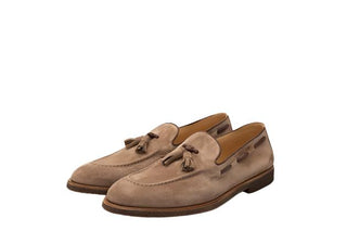 Brunello Cucinelli Mens Suede Tassle Moccasins in Light Brown