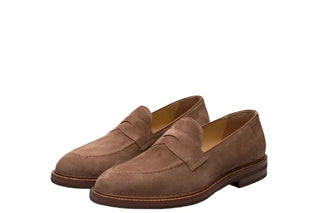 Brunello Cucinelli Mens Suede Leather Loafers in Chestnut