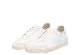 Brunello Cucinelli Mens Suede Logo Sneakers in White