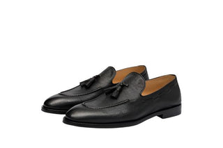 Brunello Cucinelli Mens Tassled Leather Loafers in Black