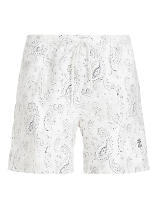 Brunello Cucinelli Mens Red & White Color Block Logo Embroidered Swim Shorts