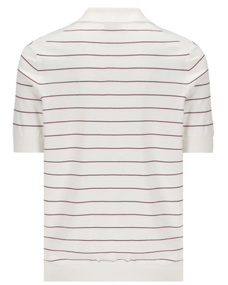 Brunello Cucinelli Mens White & Dark Red Striped-Effect Cotton Polo Shirt