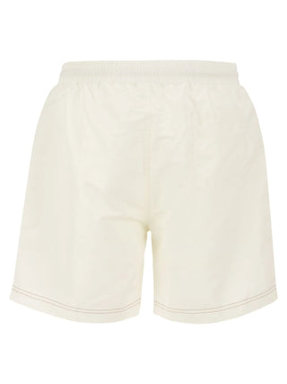 Brunello Cucinelli Mens White Logo Embroidered Swim Trunks
