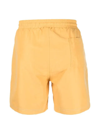 Brunello Cucinelli Mens Yellow Logo Embroidered Swim Trunks