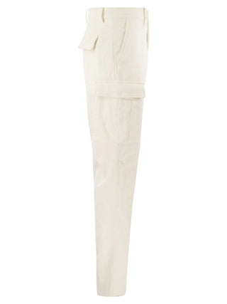 Brunello Cucinelli Mens White Subtle Striped Detail Cargo Trouser Pant