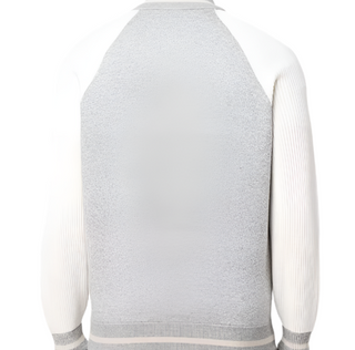 Brunello Cucinelli Mens Zipped Bomber Cardigan in White & Gray