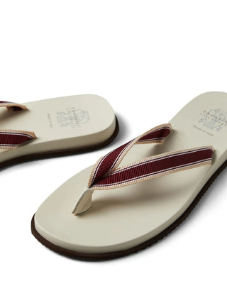 Brunello Cucinelli Stripe Detailed Open Toe Flip Flops In Red
