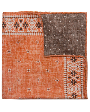 Brunello Cucinelli Salmon Orange Brown Silk Men's Pocket Square