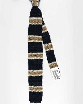 Brunello Cucinelli Striped Linen & Cotton Blend Dark Blue Taupe Knitted Square End Men's Tie