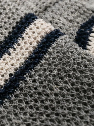 Brunello Cucinelli Striped Cotton And Linen Blend Knitted Tie Grey Navy White Men's Tie