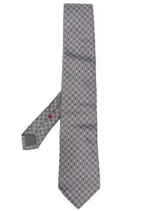 Brunello Cucinelli Silver and Dark Grey Mini Square Pattern Men's Tie