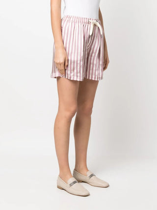 Brunello Cucinelli Women's Bermuda Striped Drawstring Purple White Shorts In Ametista