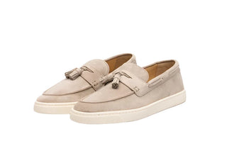 Brunello Cucinelli Suede Leather Tassle Loafers in Light Brown