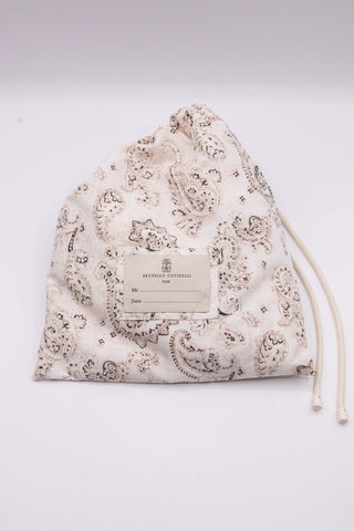Brunello Cucinelli Taupe Geometric Blue Red Silk Men's Pocket Square
