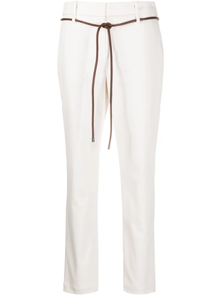 Brunello Cucinelli Womens PANTS In WHITE With Leather Brown Belt