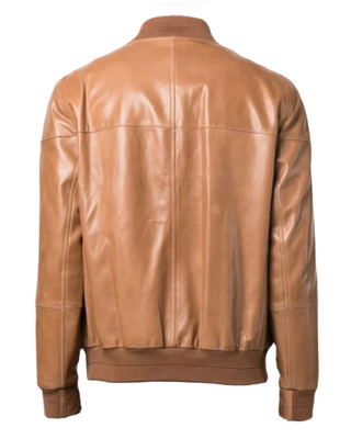 Brunello Cucinelli Zipped Men's Leather Bomber Jacket Brown