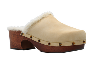 Chloe Aurna Beige Suede Clog Shoes Real Wood Structure