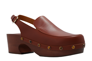 Chloe Aurna Slingback Clog Shoes In Brown With Real Wood Structure
