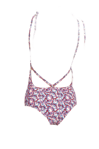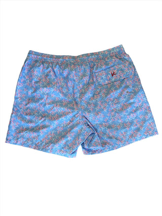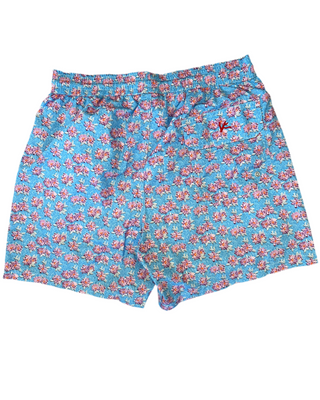 Isaia Mens Blue Pink Floral Patterned Swim Trunk