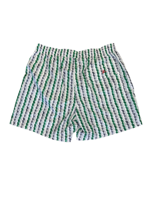 Isaia Mens Green Grey White Scalloped Stripes Swim Trunks