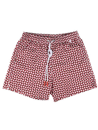 Isaia Men's Red Geometric Pattern Swim Trunks