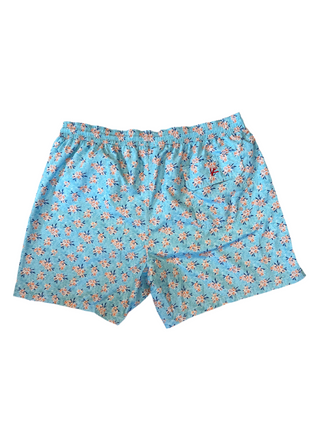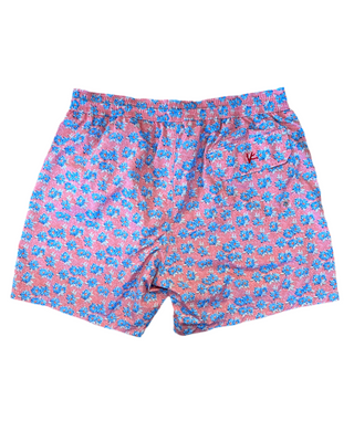 Isaia Mens Pink Blue Mini Floral Swim Trunk
