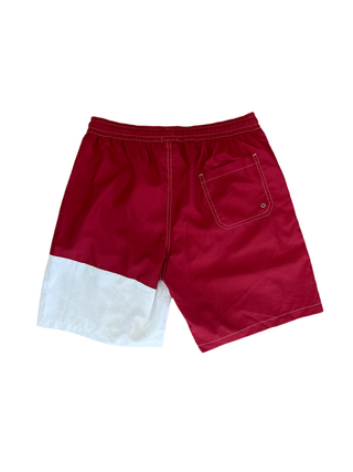 Brunello Cucinelli Mens Red & White Color Block Logo Embroidered Swim Shorts