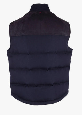 Isaia Mens Navy Blue Quilted Suede Contrast Wool Vest