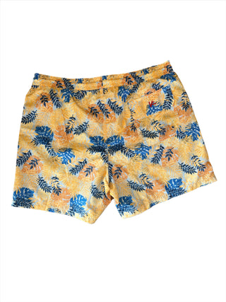 Isaia New Mens Yellow Blue Leaf Pattern Swim Trunk