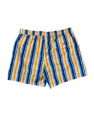 Isaia New Mens Swim Trunks Blue Yellow White Stripe Pattern