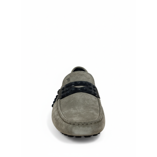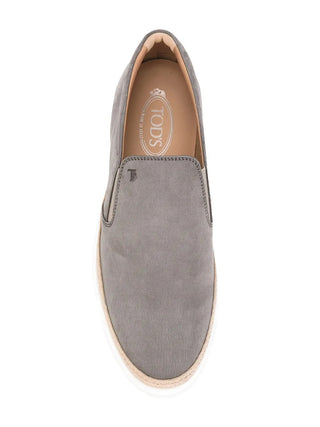 Tods Mens Grey Leather Croc Espadrille with Raffia Sole