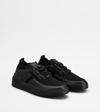 TODS Mens Leather And High Tech Fabric Sneakers In Black