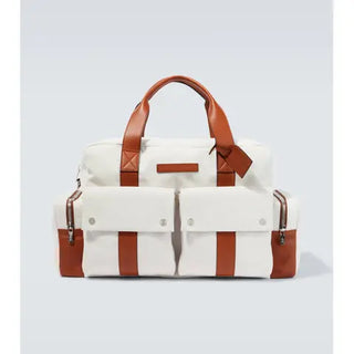 Brunello Cucinelli Men's Leather Trimmed Canvas Holdall In Off White/Brown