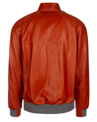 Brunello Cucinelli Men's Orange Calfskin Leather Bomber Jacket