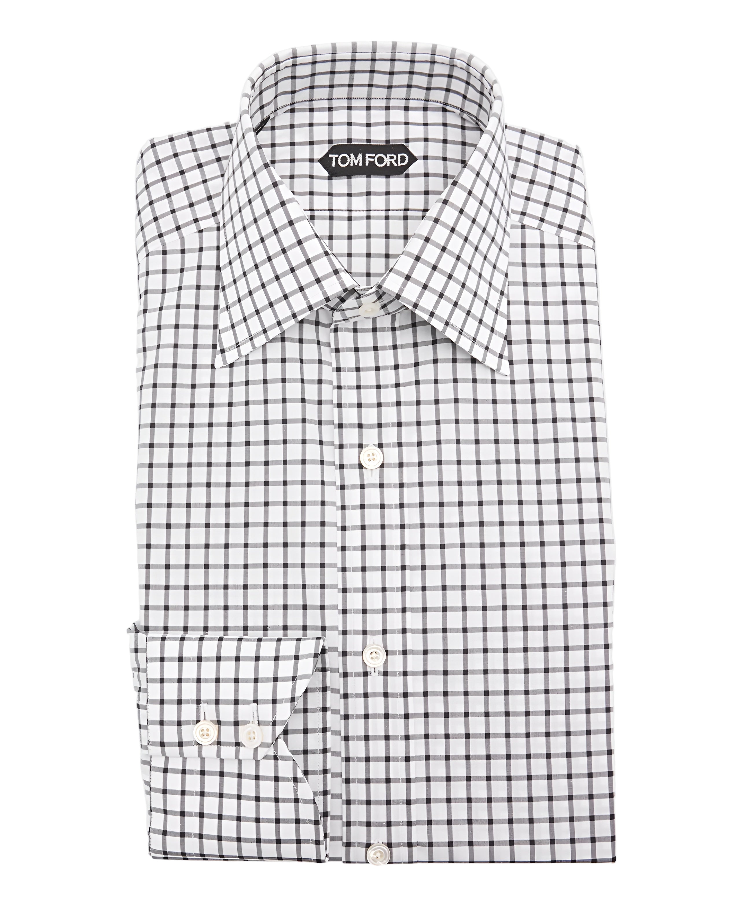 Tom Ford Men’s Black & White Checkered Button Down Dress Shirt