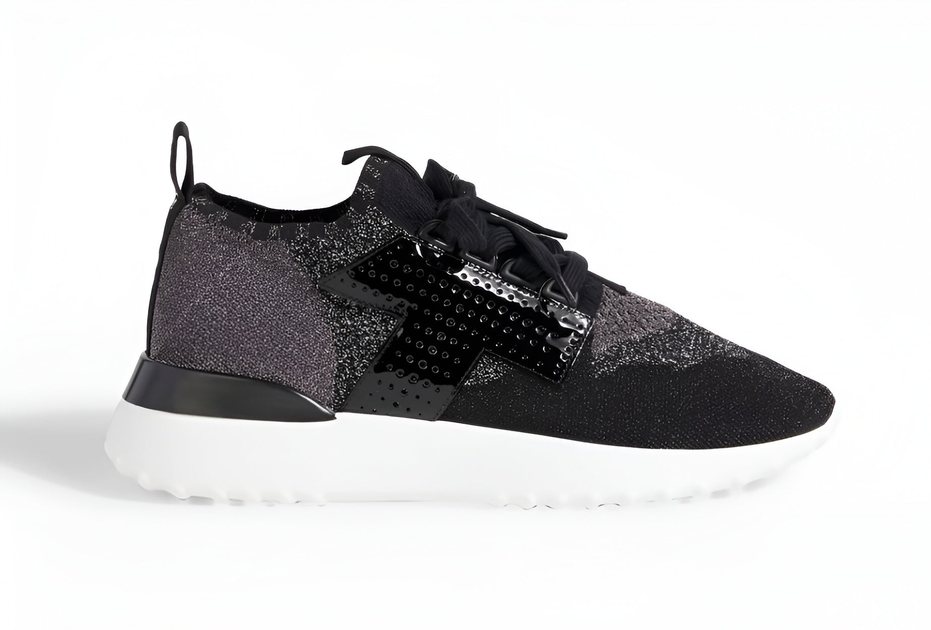 Crafted with a metallic stretch-knit material, these Tod's sneakers are both stylish and comfortable. The unique fabric allows for easy movement and a snug fit, while the metallic finish adds a touch of glamour. Perfect for any casual or athletic occasion, these sneakers are a must-have for fashion-forward individuals.