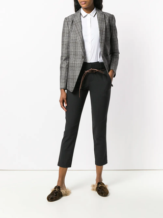 Brunello Cucinelli Womens Black & Beige Patterned Wool Pant