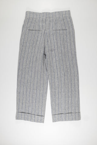 Brunello Cucinelli Womens 100% Linen Light Grey & Blue Pin Striped Cuffed Pant