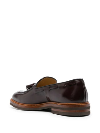 Brunello Cucinelli Mens Leather Tassle Loafers in Burgundy