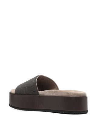 Brunello Cucinelli Women's Open Toe Slides In Dark Brown